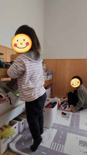 お部屋に到着するとすぐにここへいき、ガサゴソといっぱい取り出して遊び始める2人♬