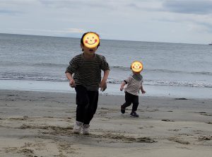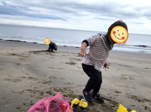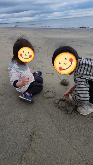 あっちにもいいものがあるかも〜!!! と、砂浜を走り回りながら探します♬