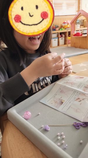 ビーズ製作も説明書と睨めっこしながらサクサク糸を通していき、、、