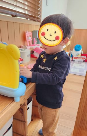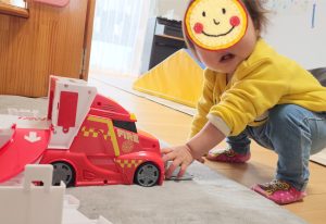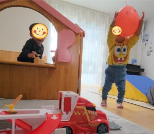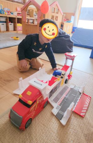 靴を脱いで、上着を脱ぐと、すぐに遊び始めます♬