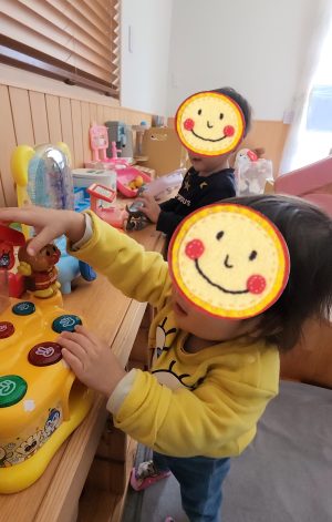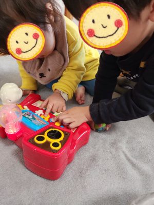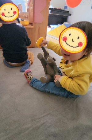 他にも色々とおもちゃがあるはずなのですが、、、お友達が楽しそうに遊んでいると、一緒に遊びたいなぁ〜✨ と、魅力的に見えて手を伸ばしあっていました😊