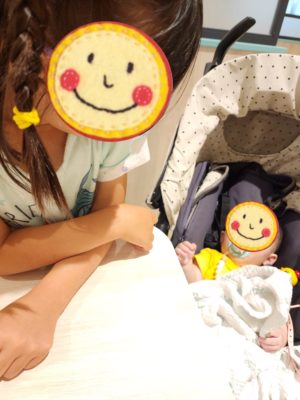 ぐっすり寝ていた小さな女の子がお目覚め👀✨ 可愛いね〜♡ と、覗き込んでいると、ニッコリ微笑んでくれるので、嬉しくってまた笑顔になっておりました♡