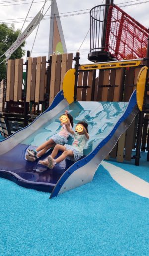 お外でも遊ぶ〜!!!! と、2人でキャッキャ言い合いながら駆け回って、上の方から お〜い! と、手を振ってくれます♡