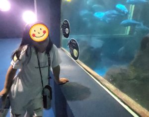 ぐる〜っと周回できる水槽では、ハコフグさんがお気に入り!