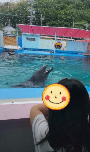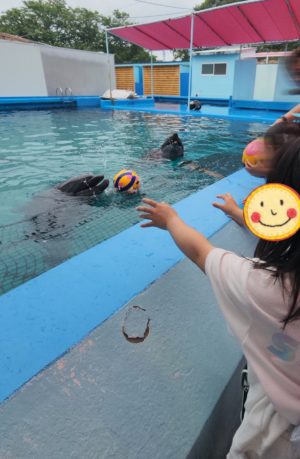 イルカさんのボール捌きはここで待っていると、窓にバンバン当たるボールにびっくりしながらも大喜び!!!