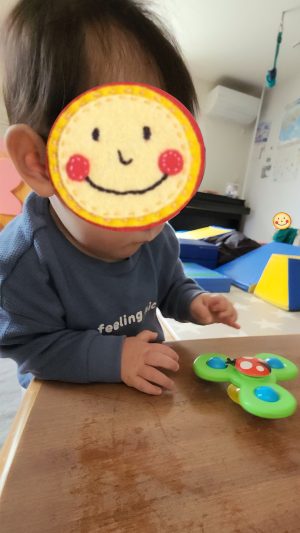 ぱんぱん叩くとくるくる回るので、大喜びで回し続けていました♬