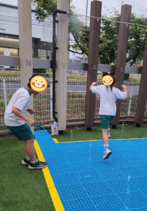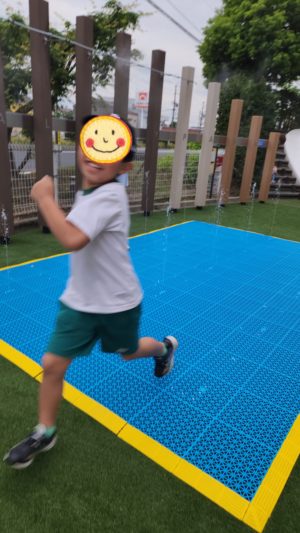 お水の噴水はお水に当たらないように通過するはずが、、、あたっちゃったぁ〜💦 と、ちょっぴり濡れちゃってました🤣