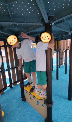 こんな遊具があったんだぁ〜!!! ちょっと遊んでいきたい〜!!! と、駆け登っていき、 お〜い!!! と、おっきな声で呼んでくれます✨
