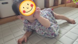 口元に手があると、安心感があるようで、ハイハイをしていてもこうなります👍