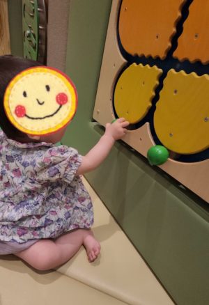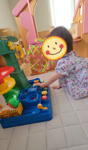 ここだと安心してハイハイもでき、近くにいるお友達にも興味津々で近づきたくなるし、この遊具も気になる〜!!! と、大移動が始まりました✨