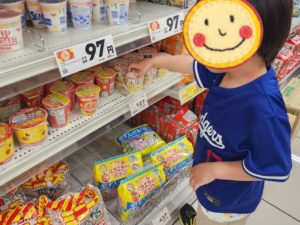 そして、、、お腹すいた〜! が始まって、、、お買い物行こ〜!!! アンパンマンがいい〜!!! とのことだったので、近くのスーパーへお買い物♬