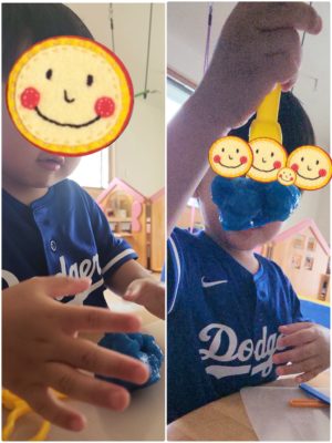 びよ〜んと伸びたり、持ち上げたスライムが ボトン! と、落ちるたびに大爆笑したり、と、大忙しでした🤣