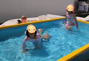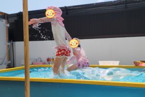そんなプールを見て、めっちゃお水いっぱい〜!!!! と、大喜びな2人♬