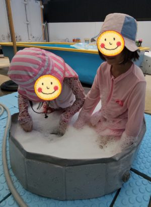 泡だらけになった体はプールでキレイにするそうです♬