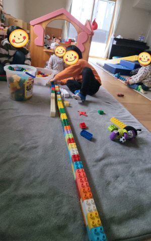 どんどん長く繋げていくので、動かそうとすると、途中でポキっと折れちゃうことも・・・💦