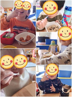 おっきなお口を開けて食べられるんだよ〜!!!! と、張り合うように食べるみんなでした😋
