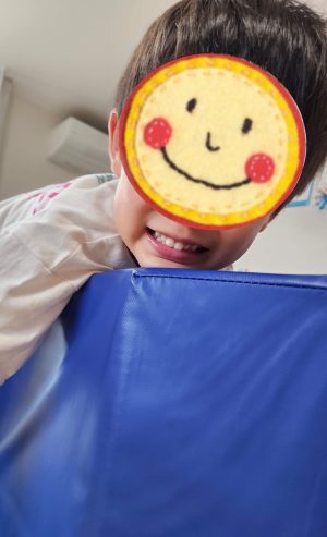 ちょっぴり緊張気味なお顔をしていましたが、マットの中にコロンと落ちているうちに表情もどんどん緩んでいき、可愛い笑顔and大きな声を聞かせてくれるようになりました♡