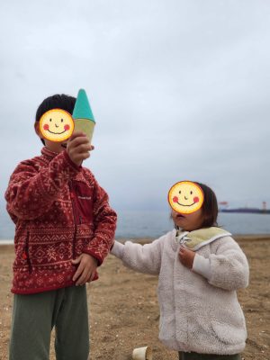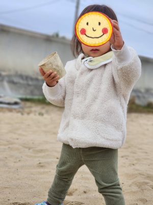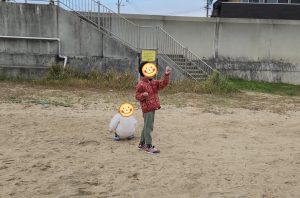大きな男の子がカップに貝殻を集めているのをみると、ぼくもーーーー! と、カップを持っておんなじように集めます✨