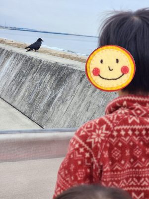 そろそろ帰ろっかぁ〜!!! と、お散歩カーで移動しているときにカラスさん発見!