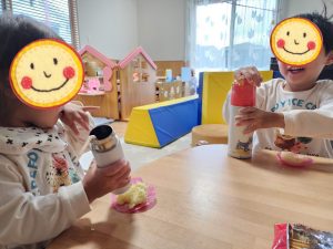 ぐっすりお昼寝をして、午後のおやつも美味しくいただきました🍠