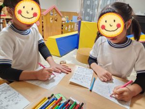 並べたい色を小さな男の子が使っていたり、取られそうになると、、、ぐりぐりしちゃうぞーーーーー!! と、頭がドリルになって防御。