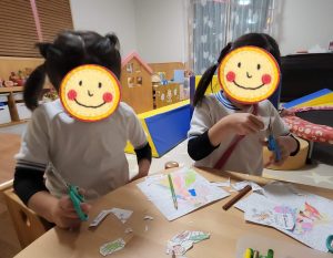チョキチョキチョキ〜!!! 細かく切って、ノリでペタペタ貼って、、、本を作りました📕
