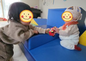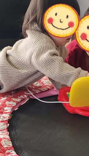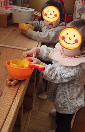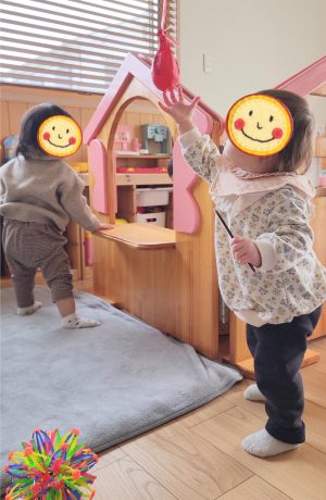 こちらではお料理をしたり、乗り物で遊んだり、、、両手でそれぞれ違う遊びで大忙しのようです♡