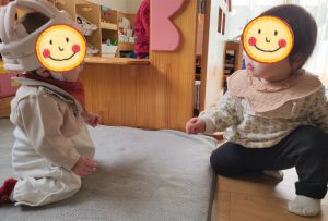目で語り合って、声を出して、手をそ〜っと伸ばして、次のところへ〜!!! と、すすんでいく2人でした♬