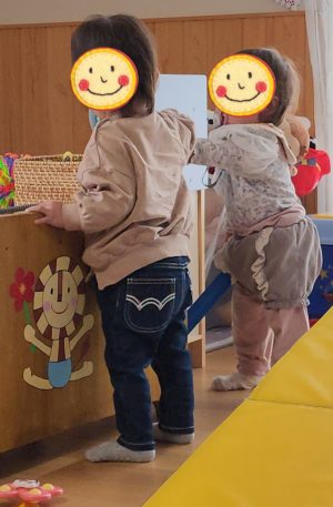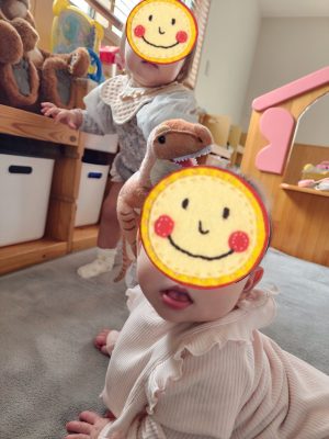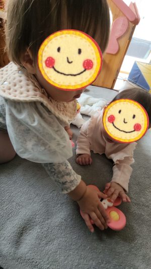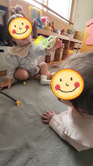 はいどうぞ〜! と、おもちゃを渡したり、何やってるの〜??? と、のぞいたり、見つめ合う回数も増えていきました😊