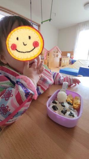 まんまるおにぎりをパックン! おいしかったね😋