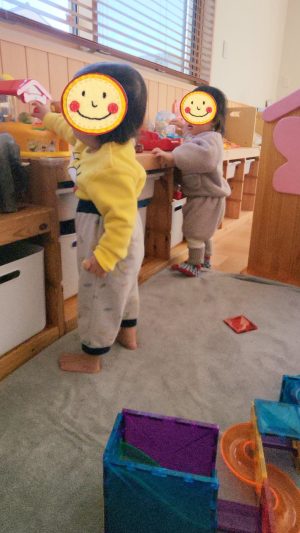 わたしも遊びたい! と、お友達の方に体が向いちゃいます。