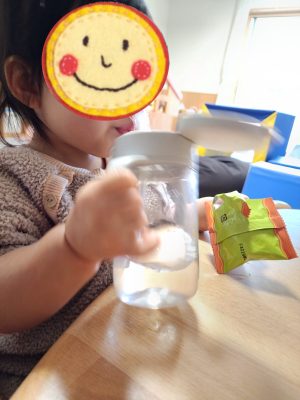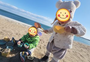 このカップのお砂を見てみて〜! と、持ってきてくれたり、パラパラ〜っと触れることも楽しくって、いい笑顔もいっぱいでした♡