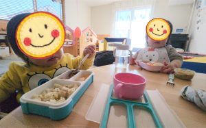 お部屋に戻ってくると、またまた涙が溢れちゃいましたが、お弁当を食べるのよ〜! と、声をかけると、すぐに椅子に座りにきてくれます😆