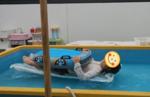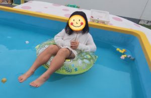 お家から持ってきたアイテムと一緒にプール遊び開始〜♬
