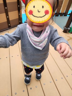 木の遊具の遊び場に行くと、ちょこっと笑顔も復活✨