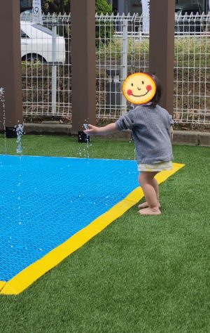 手から跳ね返ったお水がお顔にかかちゃって、びっくり! な お顔をしている時もありましたが、それも楽しくって何度もベタベタになっておりました🤣
