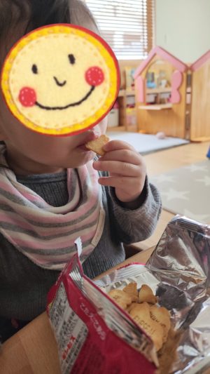 お部屋に戻ってくると、、、ちょっぴり涙が復活しちゃいましたが、おやつを食べたらもう大丈夫!