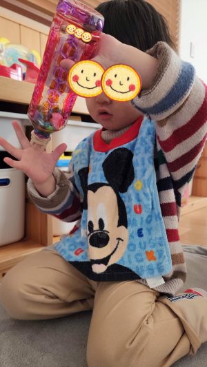 中にね、いろんなものがあるので、それに触れたり、見つけたものをニッコニコで伝えにきてくれます♬