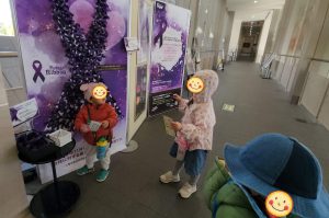 置いてあったポストカードをいただいたり、、、 パープルリボンをペタンと貼りながら歩きます👣