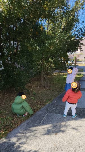 帽子の中に入れて集めておりましたが、、、帰ろっかぁ〜! と、なると、、、バイバイするー! と、置いて帰っておりました🌳