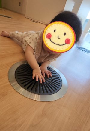 ここがいちばんのお気に入り✨ ひんやり冷たい空気が出てくるのが心地よくって気になって、ペチペチ♬