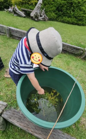 この樽の中にみんなが釣ったザリガニさんがいっぱいいたので、ここの中から釣った方が早いのでは・・・となりました🤣
