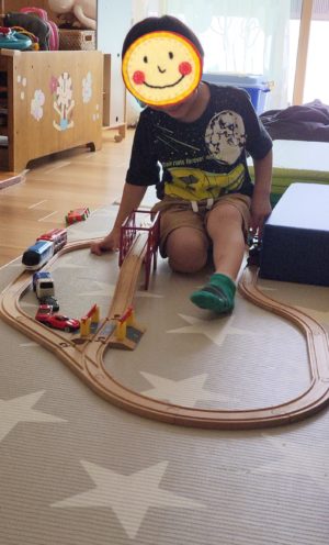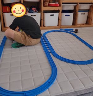 レールをあっという間に組みてたてていきます! このレールはこんな使い方をするんだ✨ と、教えてもらえることがいっぱいです🚃