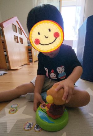 おんなじ種類で並べたり、またアンパンマンのお腹の中に戻したり、こんなおもちゃもあったんだぁ〜✨ と、初めて気づいたかのように楽しんでおりますが、、、ず〜っと前からあるんだけどな〜🤣