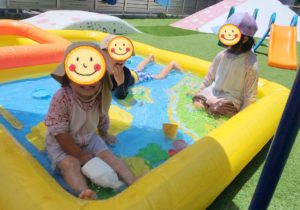 や〜っと大きな女の子もプールの中にチャポン!と入ってくれました♬
