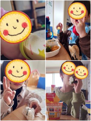 早すぎるお弁当を食べた女の子もおにぎり追加! おいしいね〜✨ と、言い合いながら食べられるのも食欲が増します!!