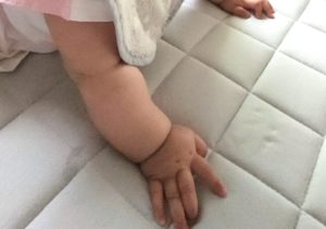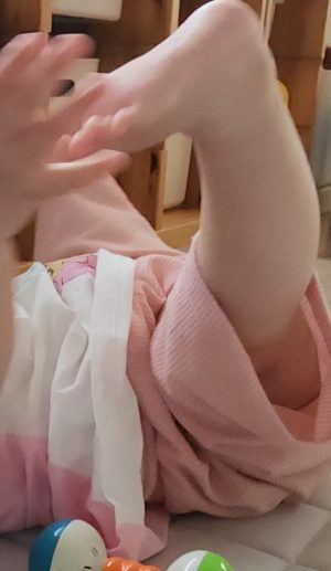 抱っこからマットへごろ〜んとすると、すぐにグルンと寝返って体を持ち上げます!! この体制が続くと、ちょっと苦しいよー!!!! と、プンスカ起こり始めちゃう時もあるのですが、、、体勢が楽になると、すぐにニッコリしてくれます♡
