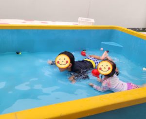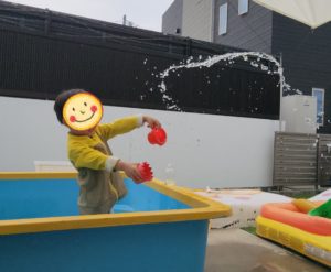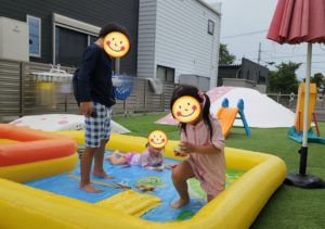 大きい方のプールのお水が少ない!!!! と、男の子からブツブツ言われちゃいますが、、、3人で入れた方が楽しいからいいやん〜! と、伝えると、それもそ〜なんだけど〜・・・ というような感じでした🤣