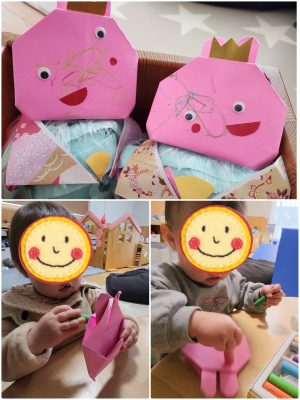 はいどうぞ〜!!! と、紙を渡すと、夢中になって描き続けてくれて、うさぎさんのお雛様が完成しました〜!