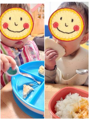 おっきなパンもおにぎりも おっきなお口を開けて頬張りました🍙 おいしかったね♡